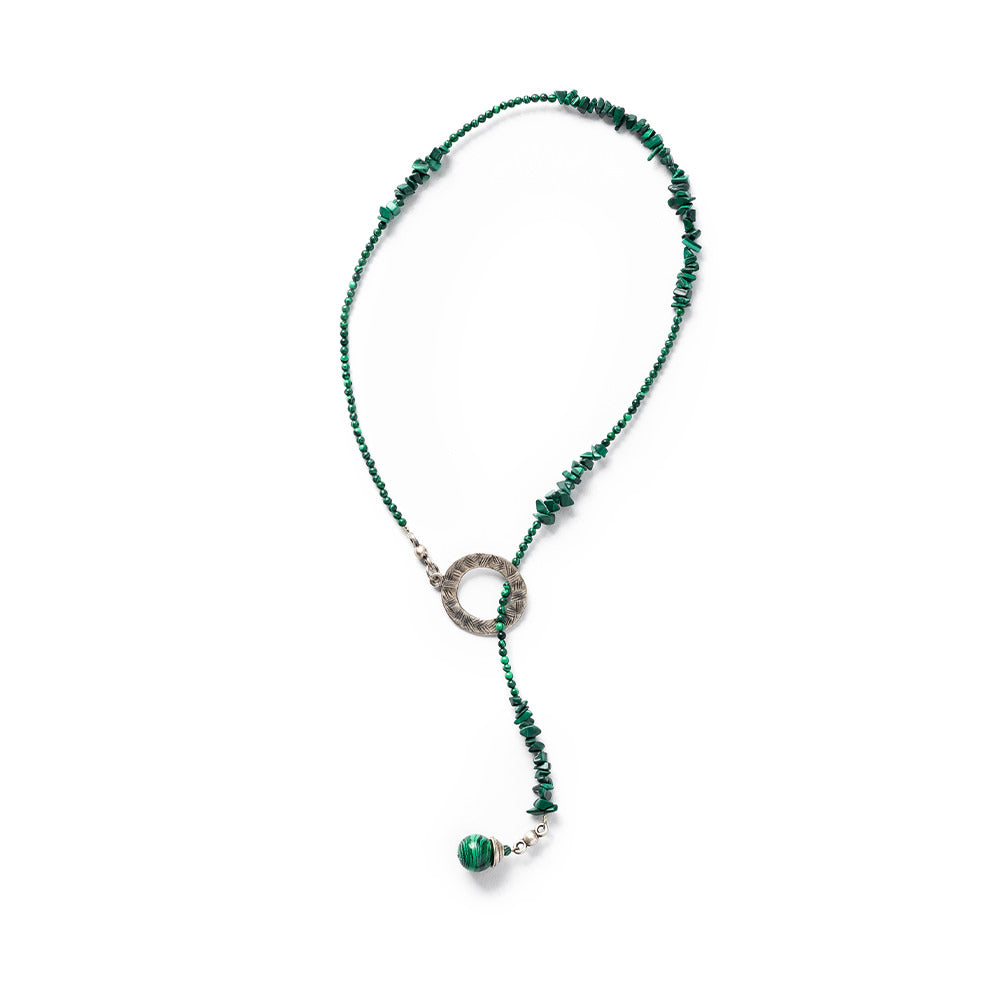 Ogrlica od malahita sa detaljima metalne legure sa srebrom.