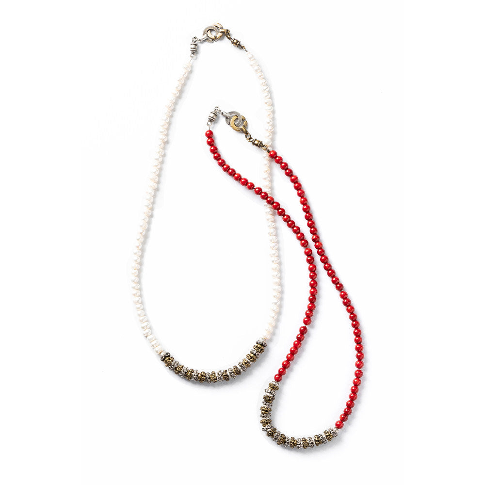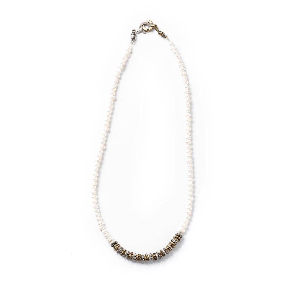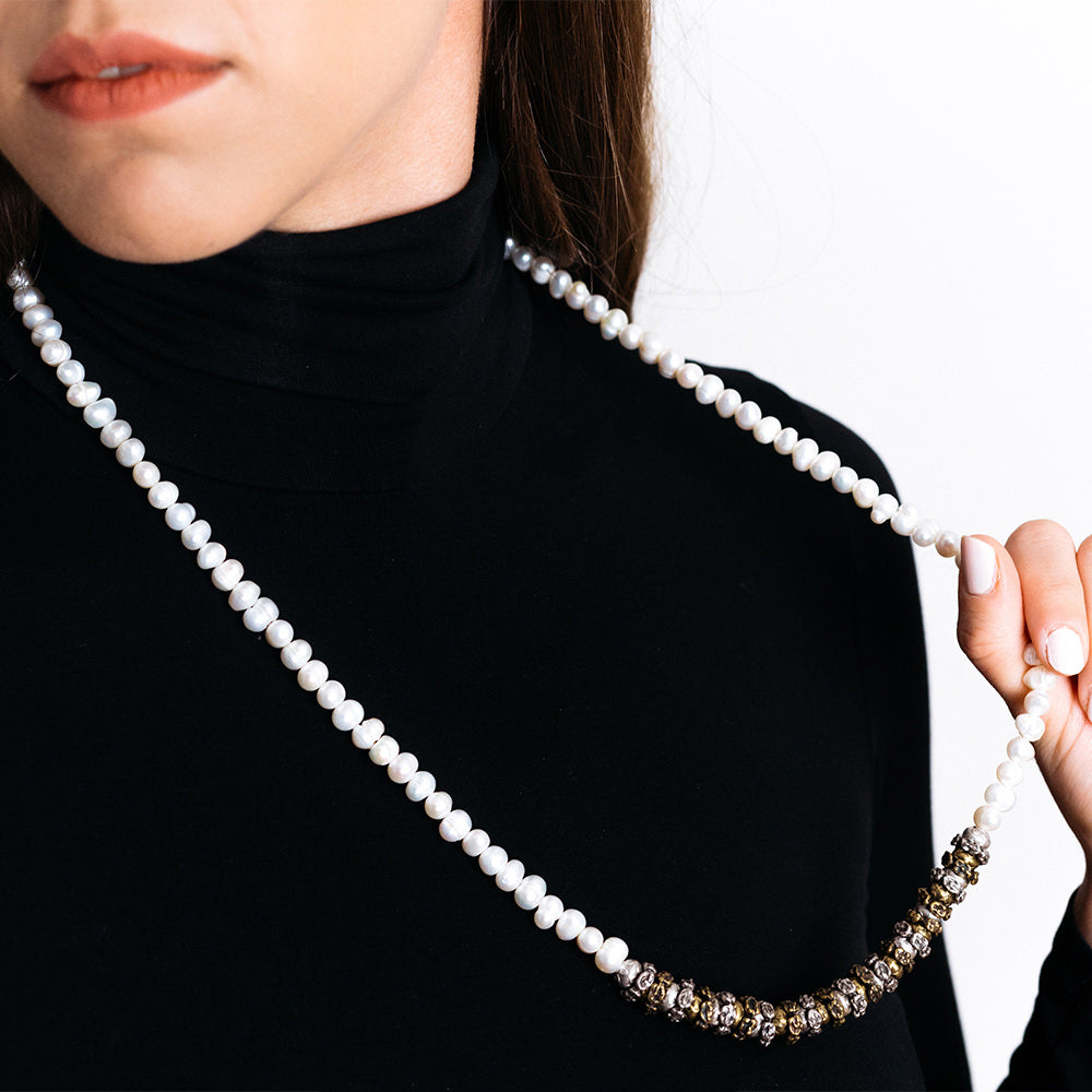 Ogrlica od riječnih bisera sa detaljima metalne legure s patinom.