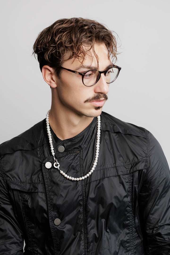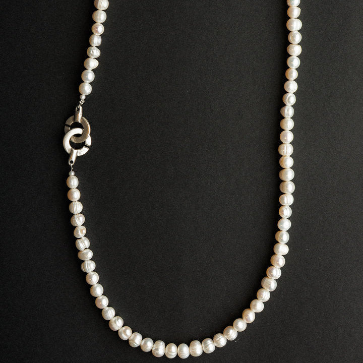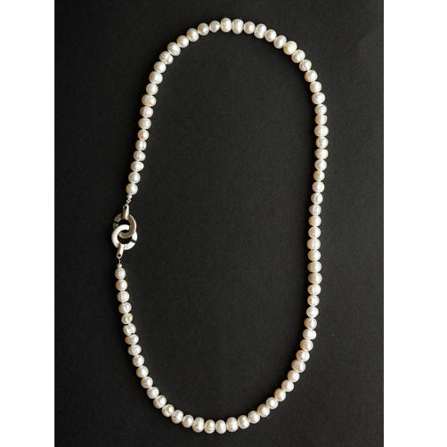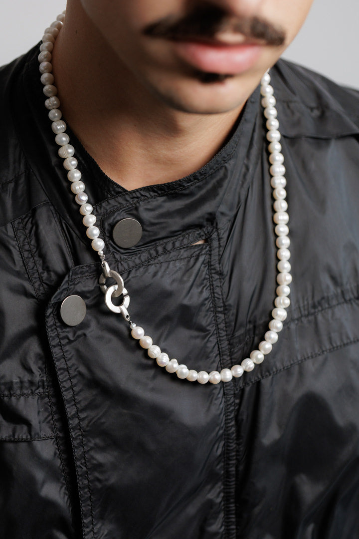 Ogrlica od riječnih bisera i metalne legure s patinom.