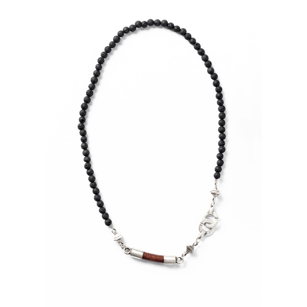 Ogrlica od vulkanskog kamena s elementima metalne legure s patinom.