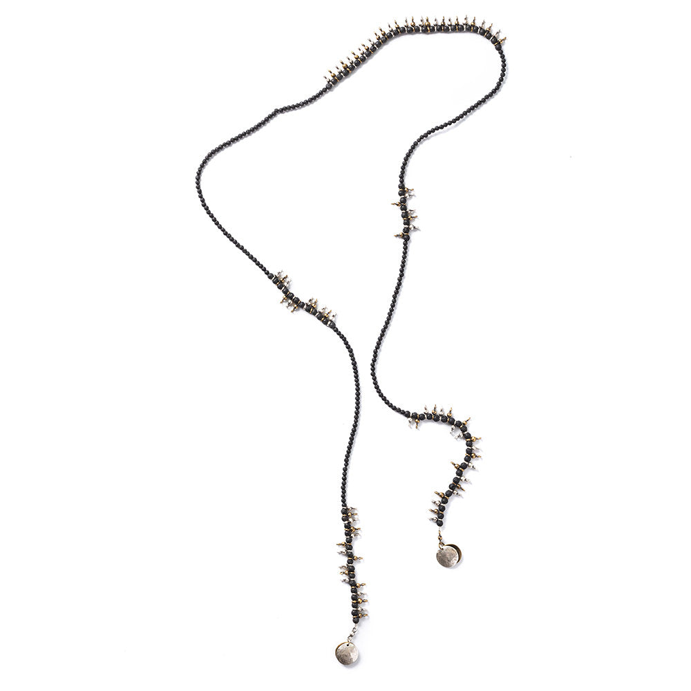 Ogrlica od vulkanskog kamena sa elementima metalne legure s patinom i mesinga.